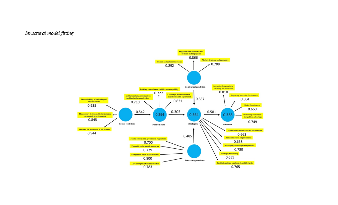 In an era of rapid technological change and increasing market competition, organizations need the ability to simultaneously exploit existing capabilities and explore emerging opportunities in order to survive and progress; a concept known in management literature as " Marketing ambidexterity." The present study aims to investigate and evaluate the maturity of marketing ambidexterity in Iran's telecommunications industries based on a conceptual model approved by experts as the infrastructure for creating research tools and derived from research literature. This descriptive-survey study was conducted on a statistical sample of 384 employees of telecommunications organizations using convenient random sampling. Participants responded to a researcher-made questionnaire consisting of 118 items. Structural equation modeling with partial least squares (SEM-PLS) was used to fit the model and measure factor loadings. The fit indices were within the acceptable range and indicated the validity of the constructed tool for the application of the model in the telecommunications industry. This model emphasizes that achieving marketing ambidexterity requires simultaneously exploiting current capabilities and exploring future opportunities in a turbulent technology-driven environment.